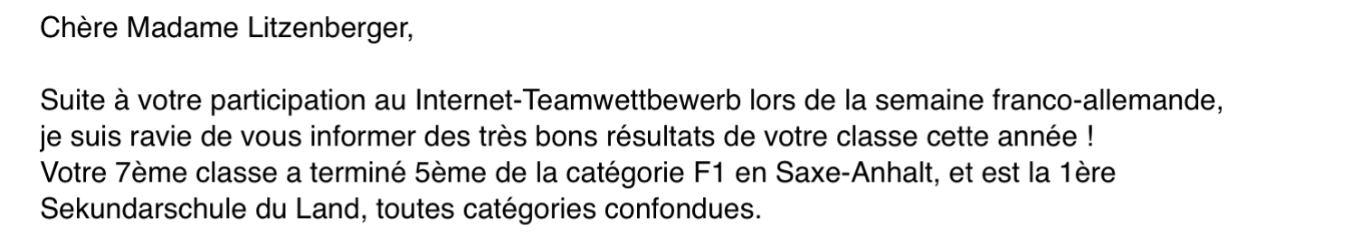 Nun können sie einen ersten Lernerfolg verzeichnen: Platz 5 im Geamtwettbewerb des Landes Sachsen-Anhalt und Platz 1 im Bereich der Sekundarschulen.