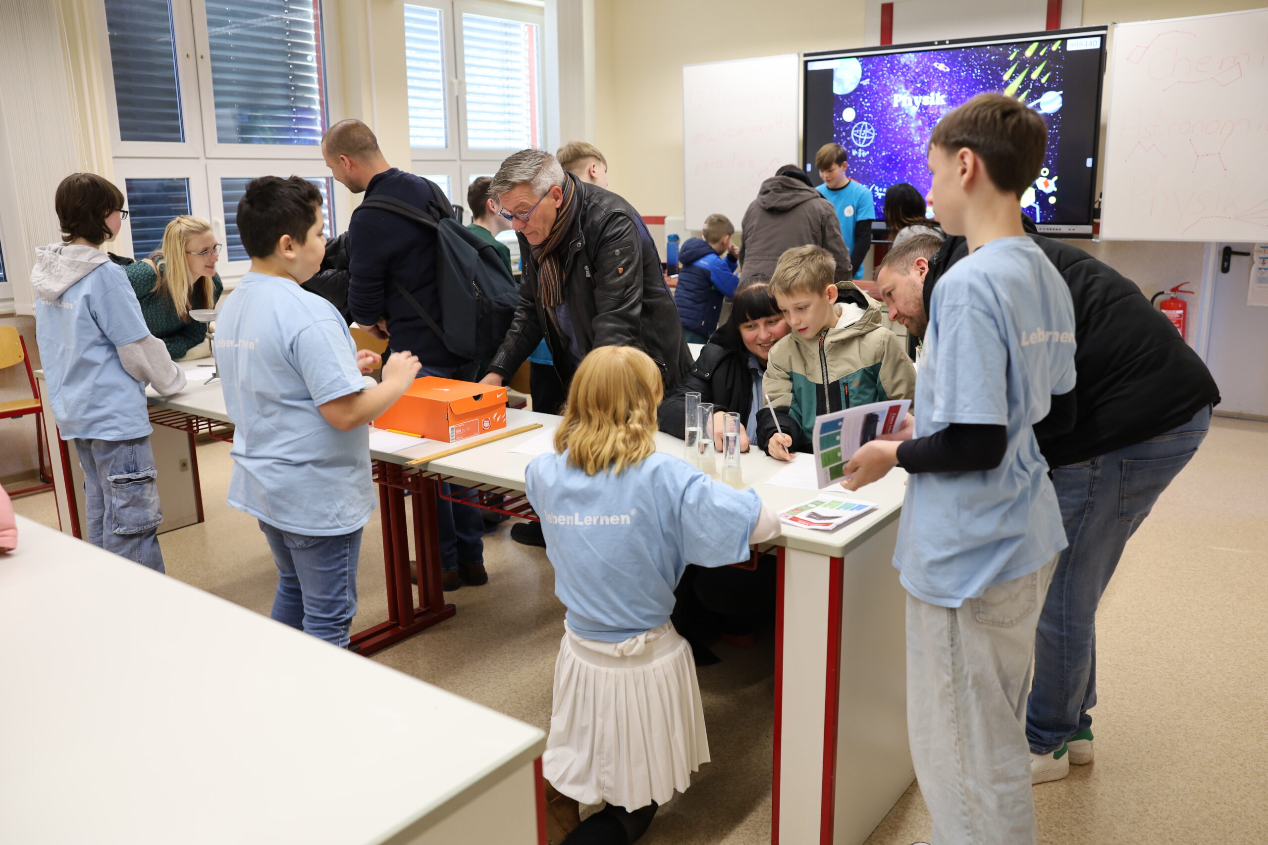 Schülerinnen und Schüler führen Sie durch unser Gebäude oder zeigen Ihnen Ausschnitte aus dem Unterrichtsalltag. Nutzen Sie die Gelegenheit, mit anderen Eltern oder den Mitgliedern des Kollegiums ins Gespräch zu kommen.